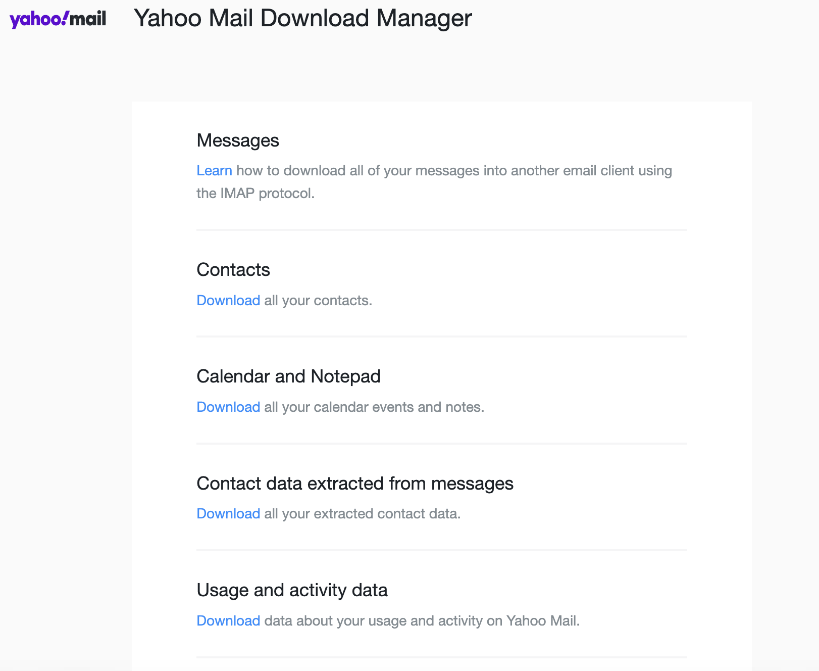 If you are only concerned with downloading your Yahoo Mail data, you can skip straight to the Yahoo Mail Download Manager(new window).