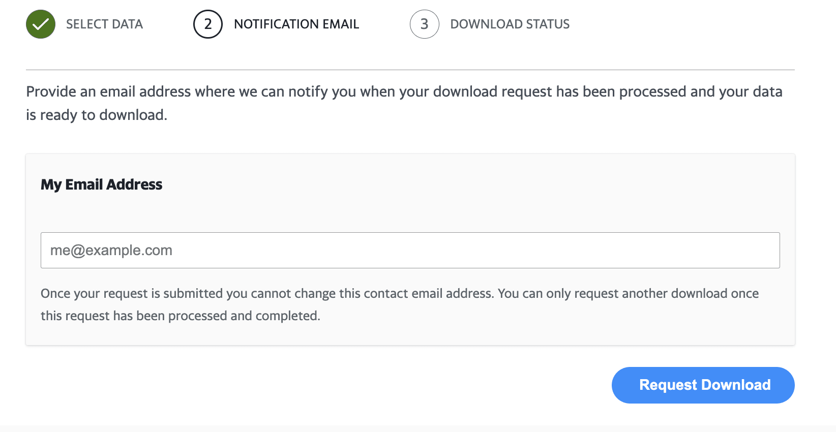 - You can then input your email address and click Request Download. Next follow the verification steps and monitor your Download Status: