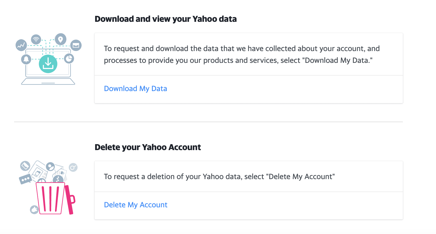 - Scroll down near the bottom of the page until you find options to both Download and view your Yahoo data and Delete Your Yahoo Account.