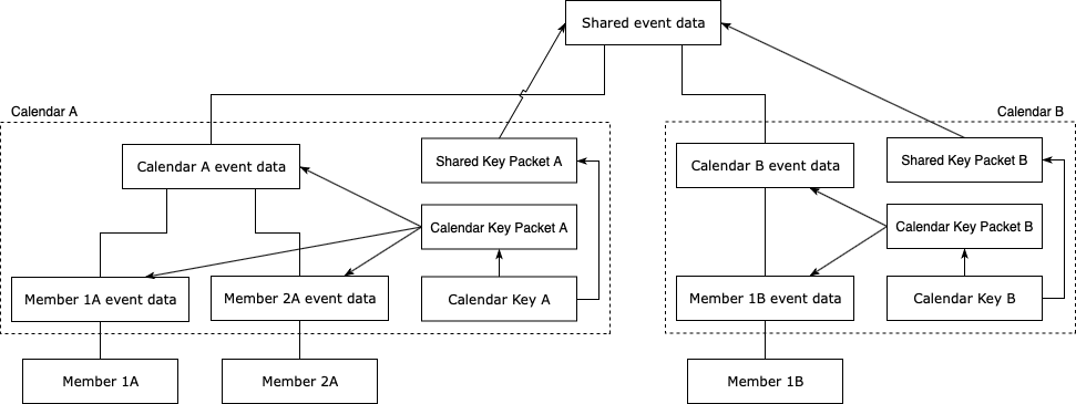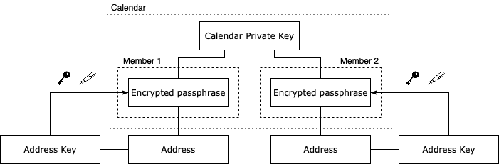 This allows multiple members to be part of the same calendar and share the same events without having to encrypt them with multiple keys.