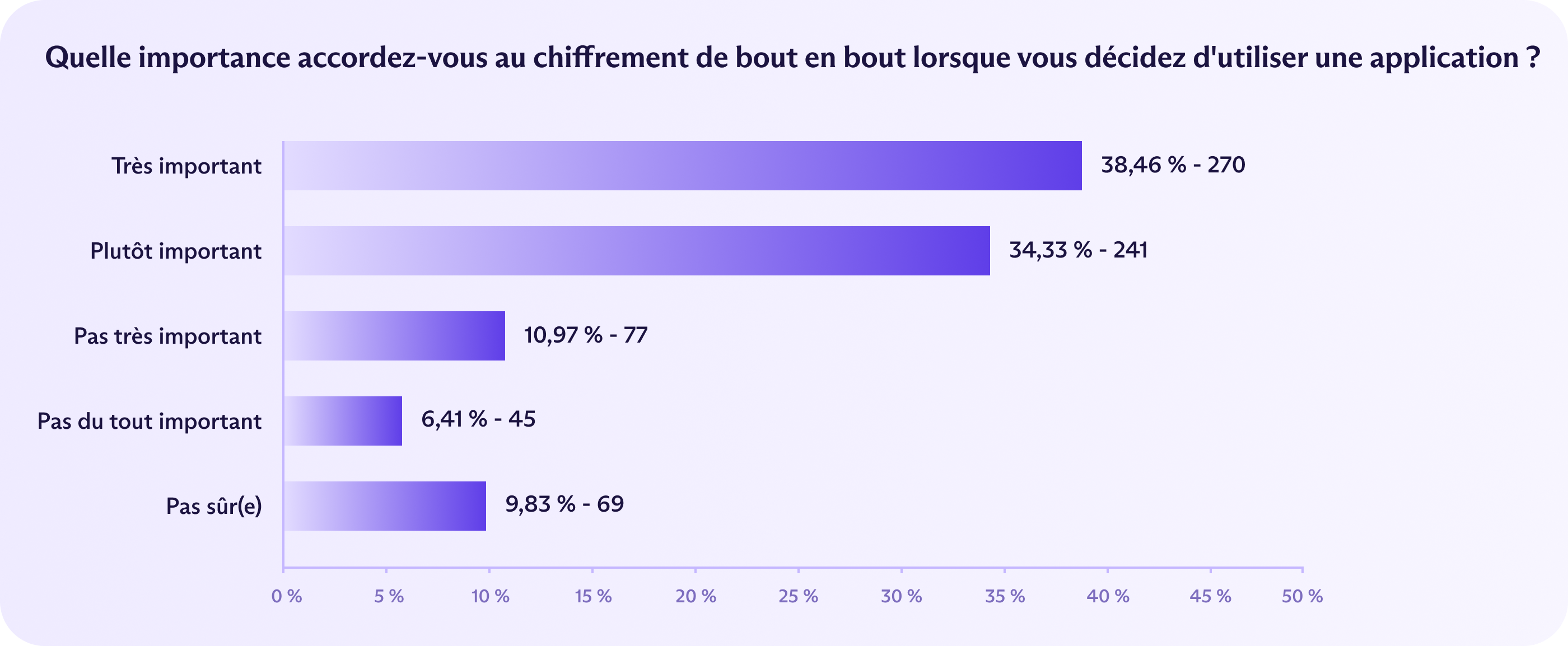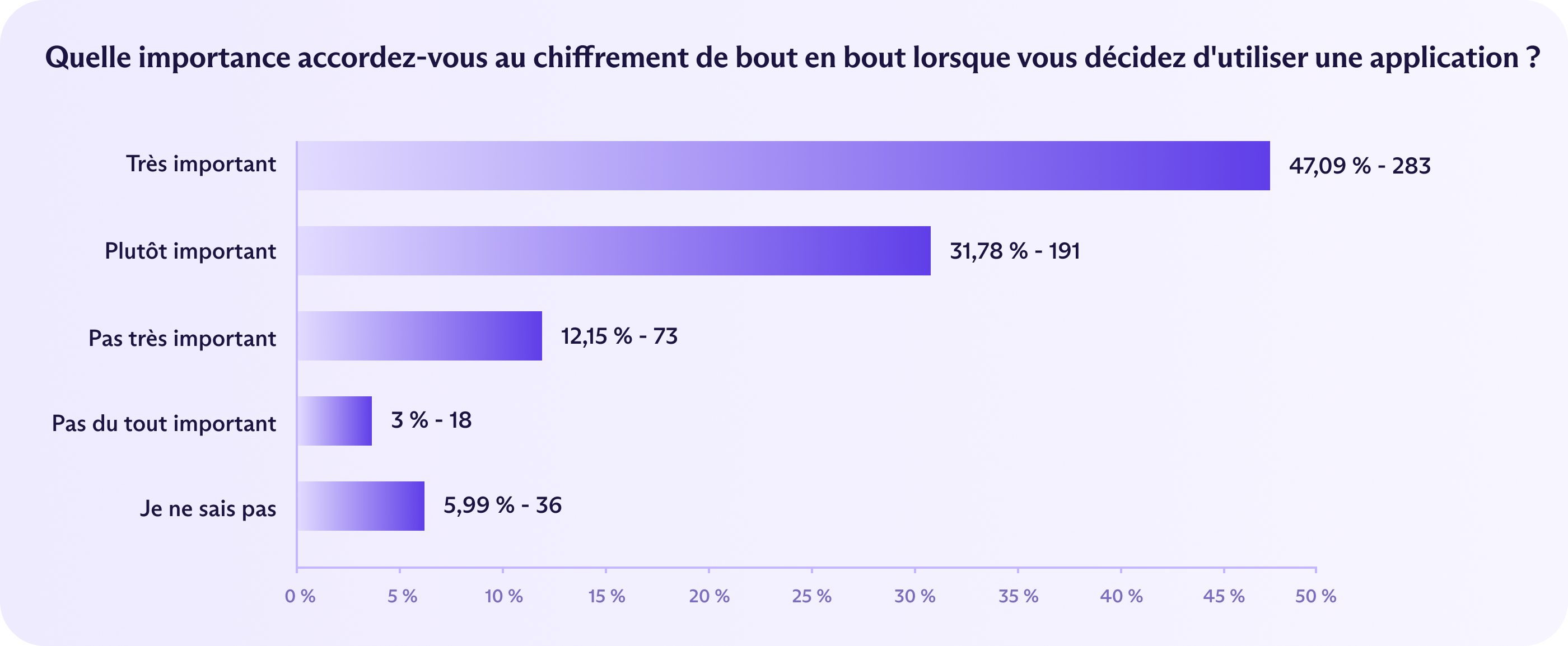 Près de la moitié (47 %) ont déclaré que l'E2EE était « très important » — le taux le plus élevé des quatre pays.