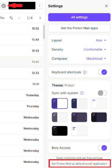 1. Visit mail.proton.me(nouvelle fenêtre) Firefox and go to SettingsSet Proton Mail as default email application.