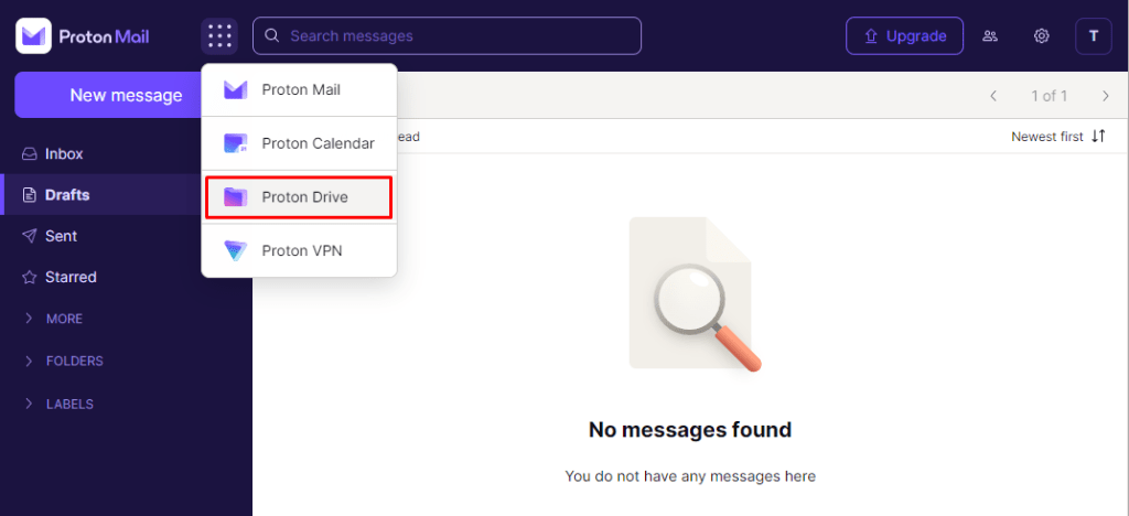 1. Log in to your Proton Account at account.proton.me and switch to Proton Drive.
