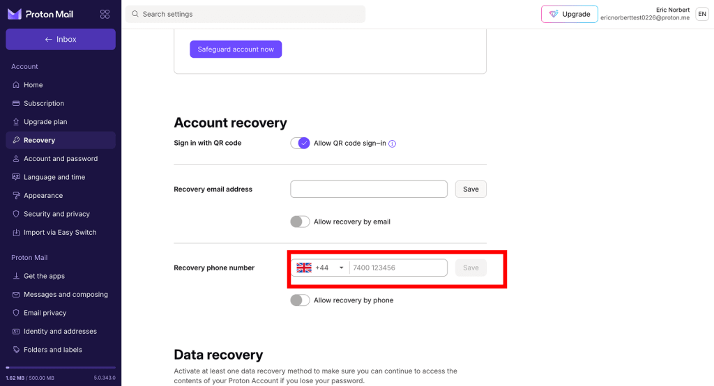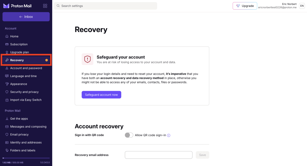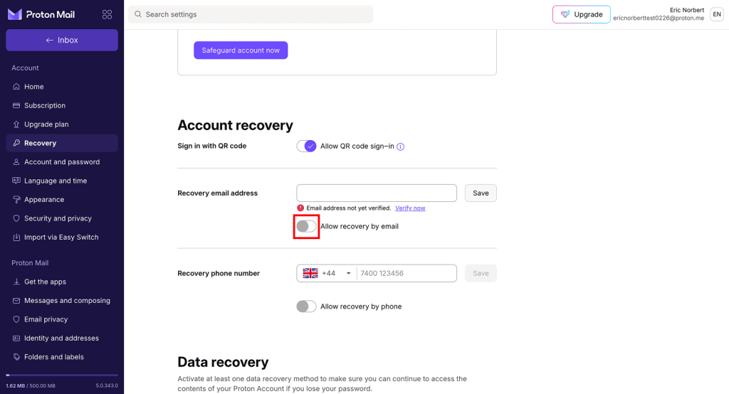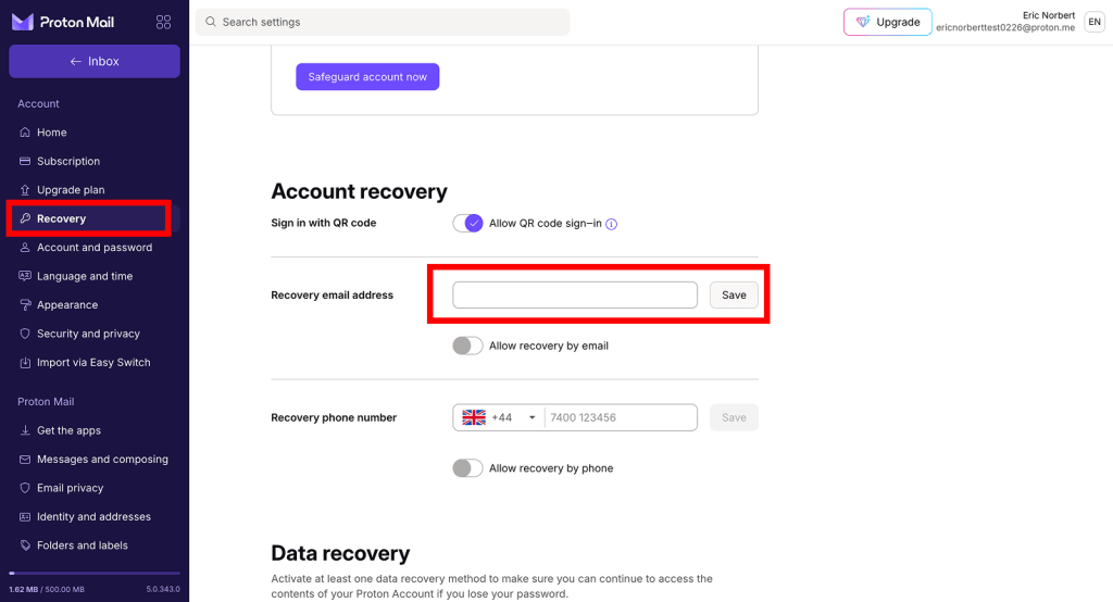 - Scroll to Recovery email address. Enter your recovery email address and click Save.