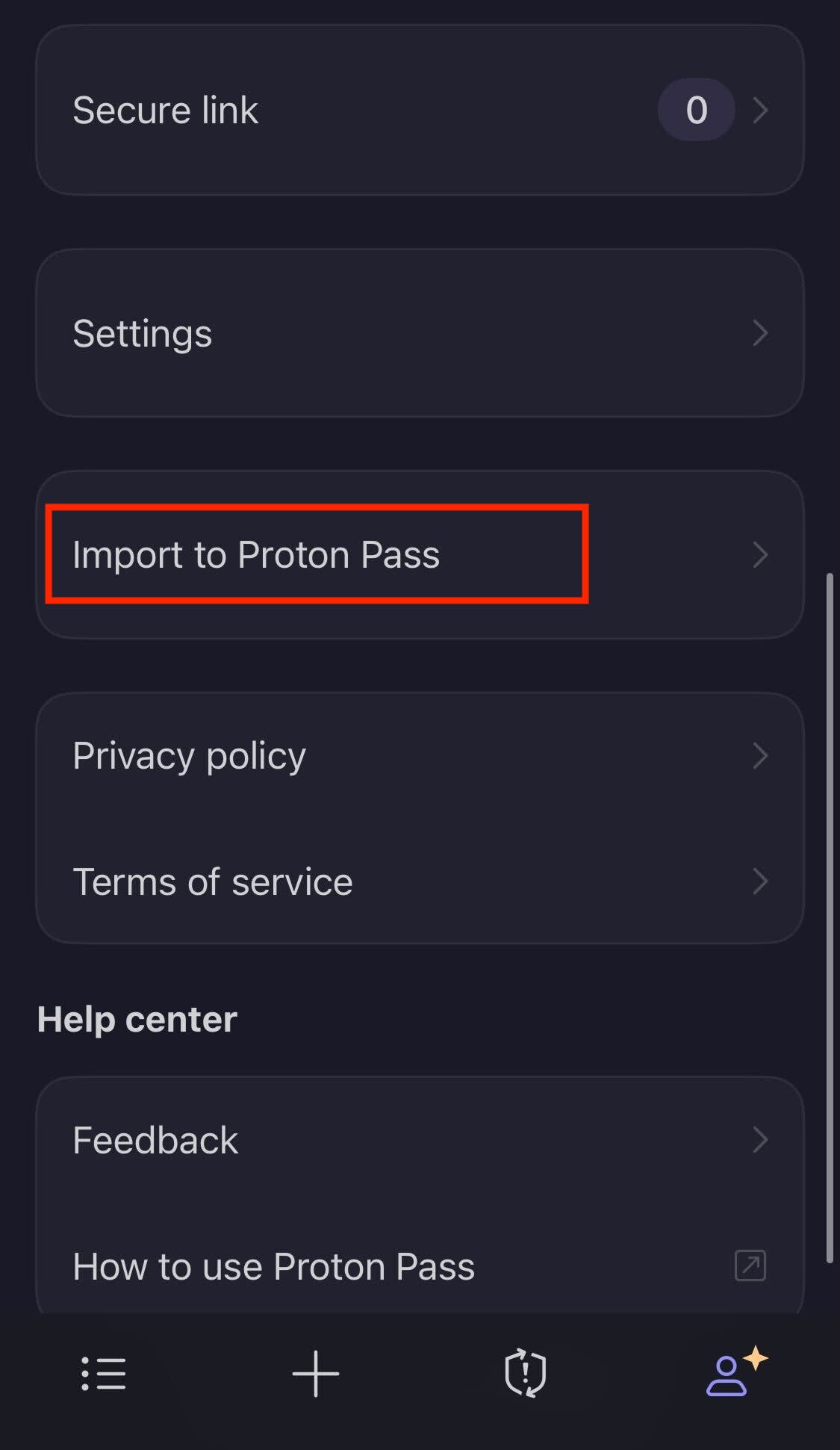Import your passwords to the Proton Pass iOS app
