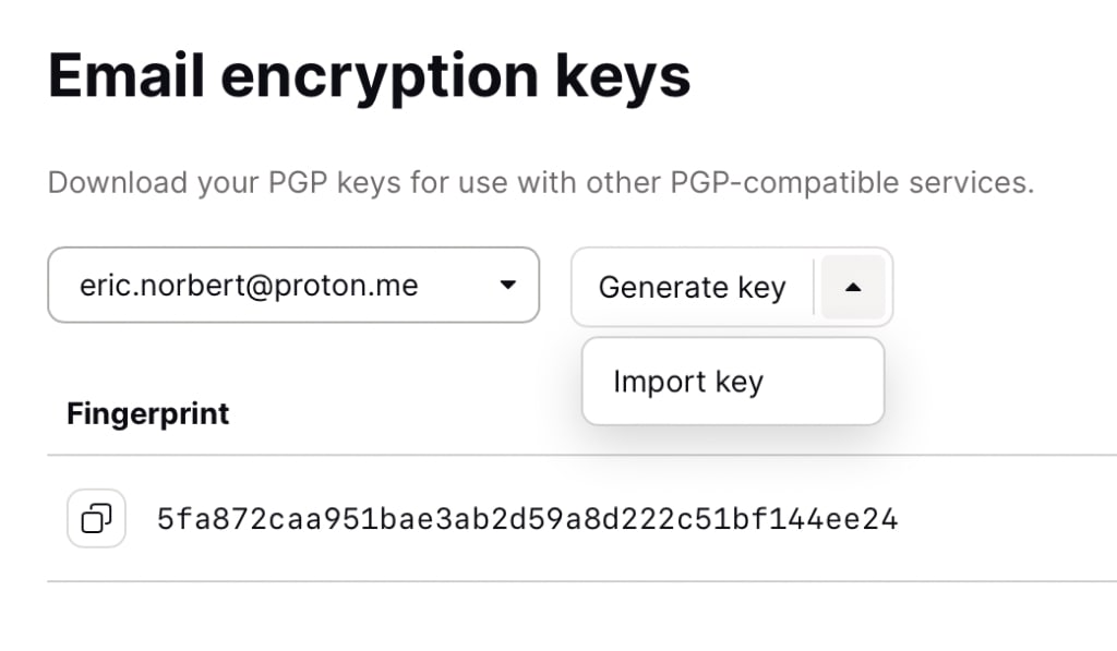Proton Mail also allows you to import keys, generate keys, and export your public and private keys.