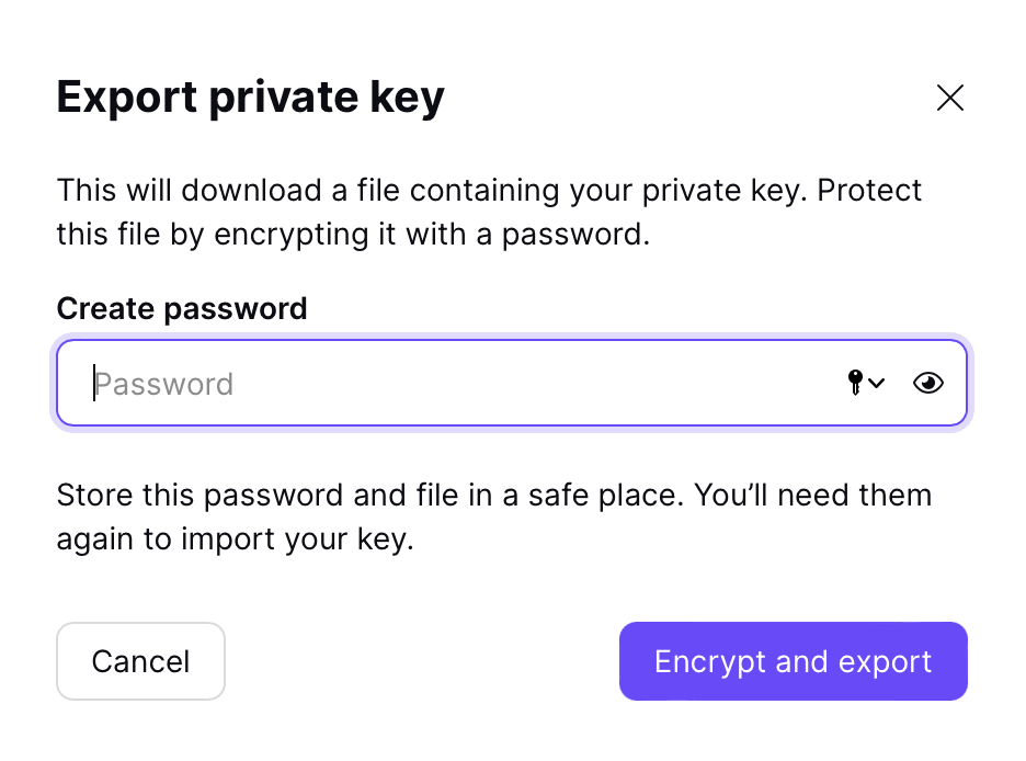 Note: Make sure that no one except you has access to the key you are trying to import. Never import a key generated by a third-party.