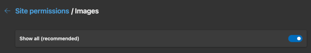 Open Edge and type in edge://settings/content/images/ in the address bar. Under Images, activate the toggle to show all images by default.