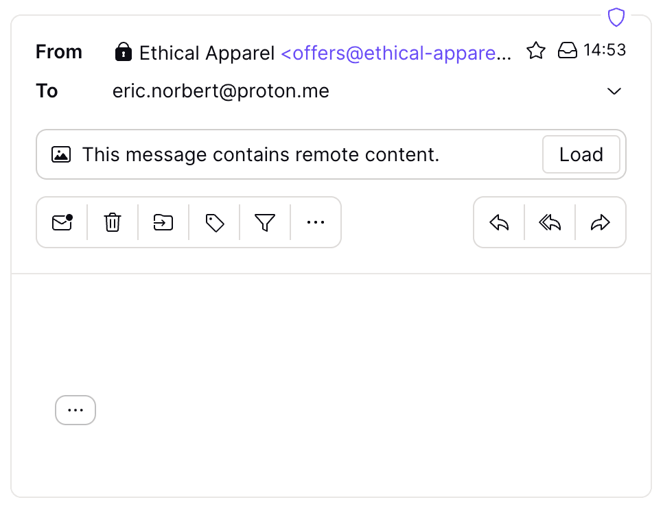 Thanks to Proton Mail’s tracker protection, senders cannot use remote images to reliably determine who, when, or where someone opens an email, so remote images are shown automatically in the emails you read.