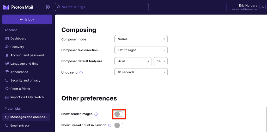 If you turn on Show sender images, note that sender images will only be displayed on the Proton Mail web app if you set your mailbox density to Comfortable. If your set your mailbox density to Compact, sender images won’t appear.