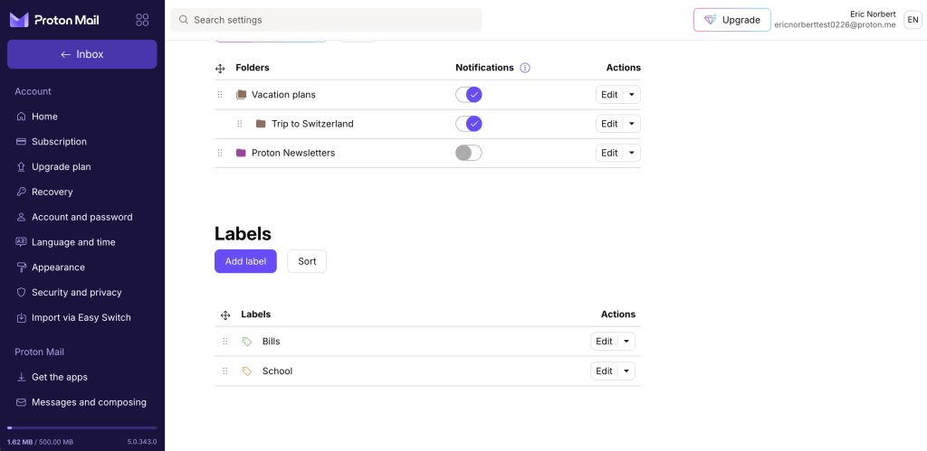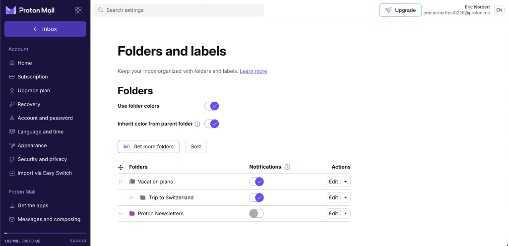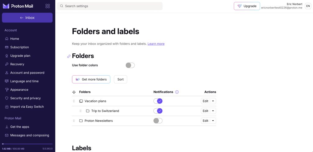 Users on a Proton Free plan are limited to creating three folders and three labels. On any paid Proton Mail plan you can create unlimited folders and unlimited labels.