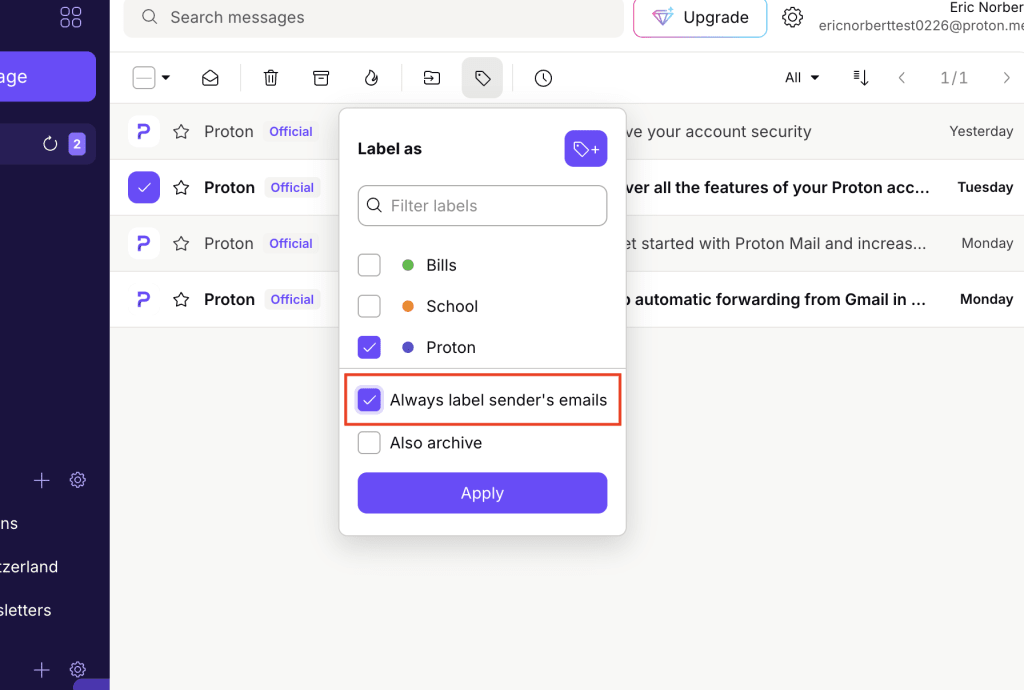 If you want emails from a specific sender to automatically have the same label assigned, select Always label sender’s emails.